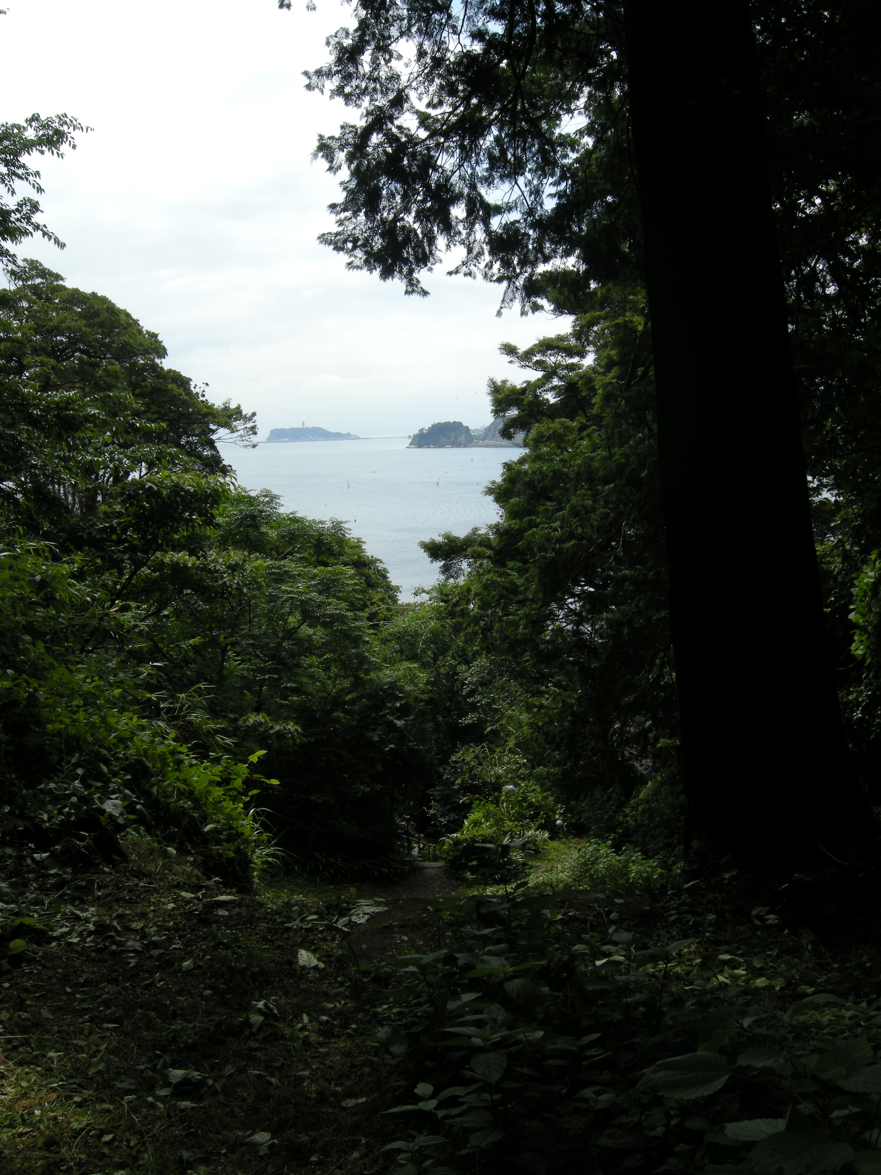 左手に江の島が見える。稲村ケ崎から攻めてくる敵が一望できる