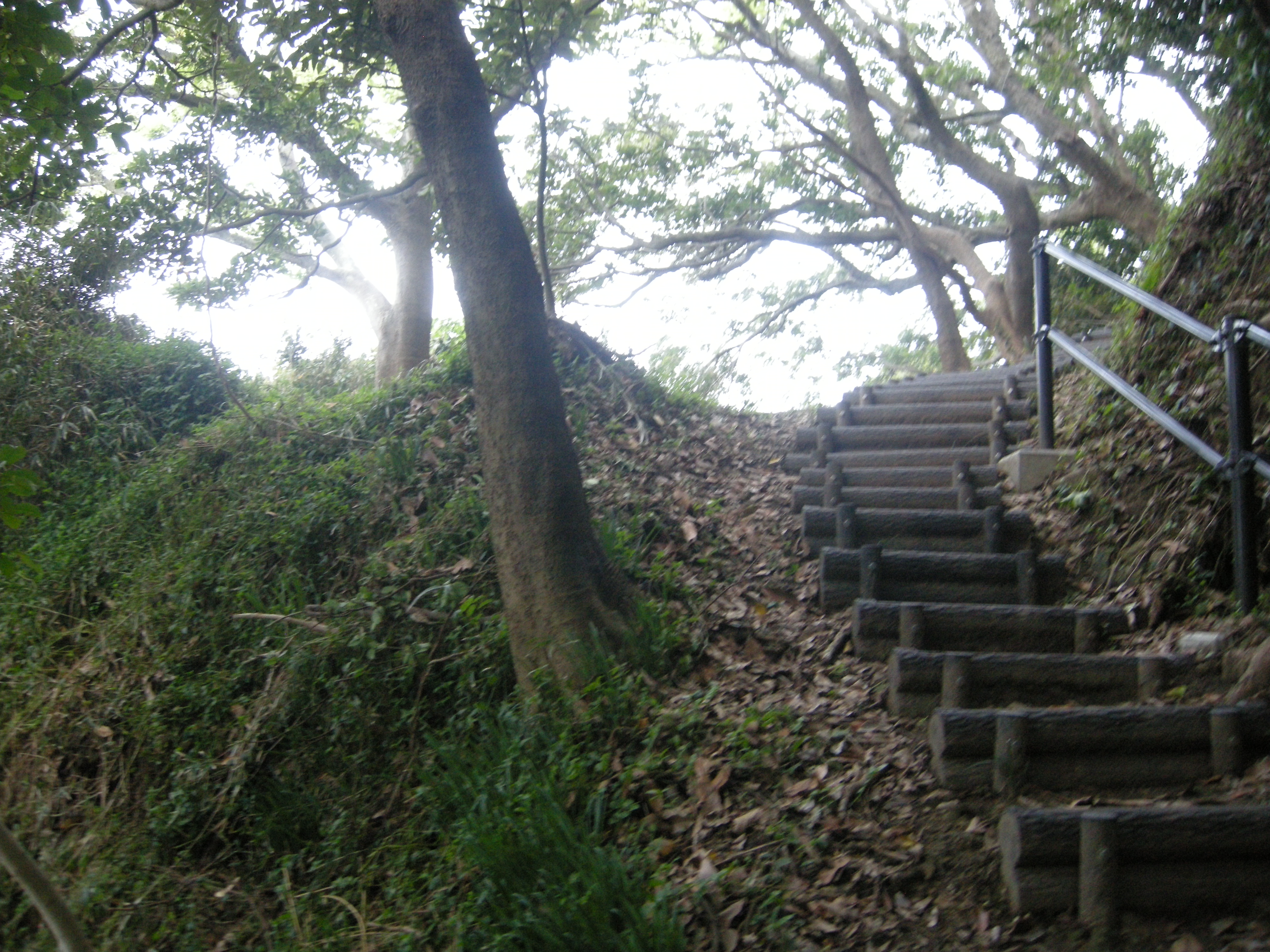 主郭から逗子マリーナ側へ降りる道。虎口・土塁跡が確認できる。